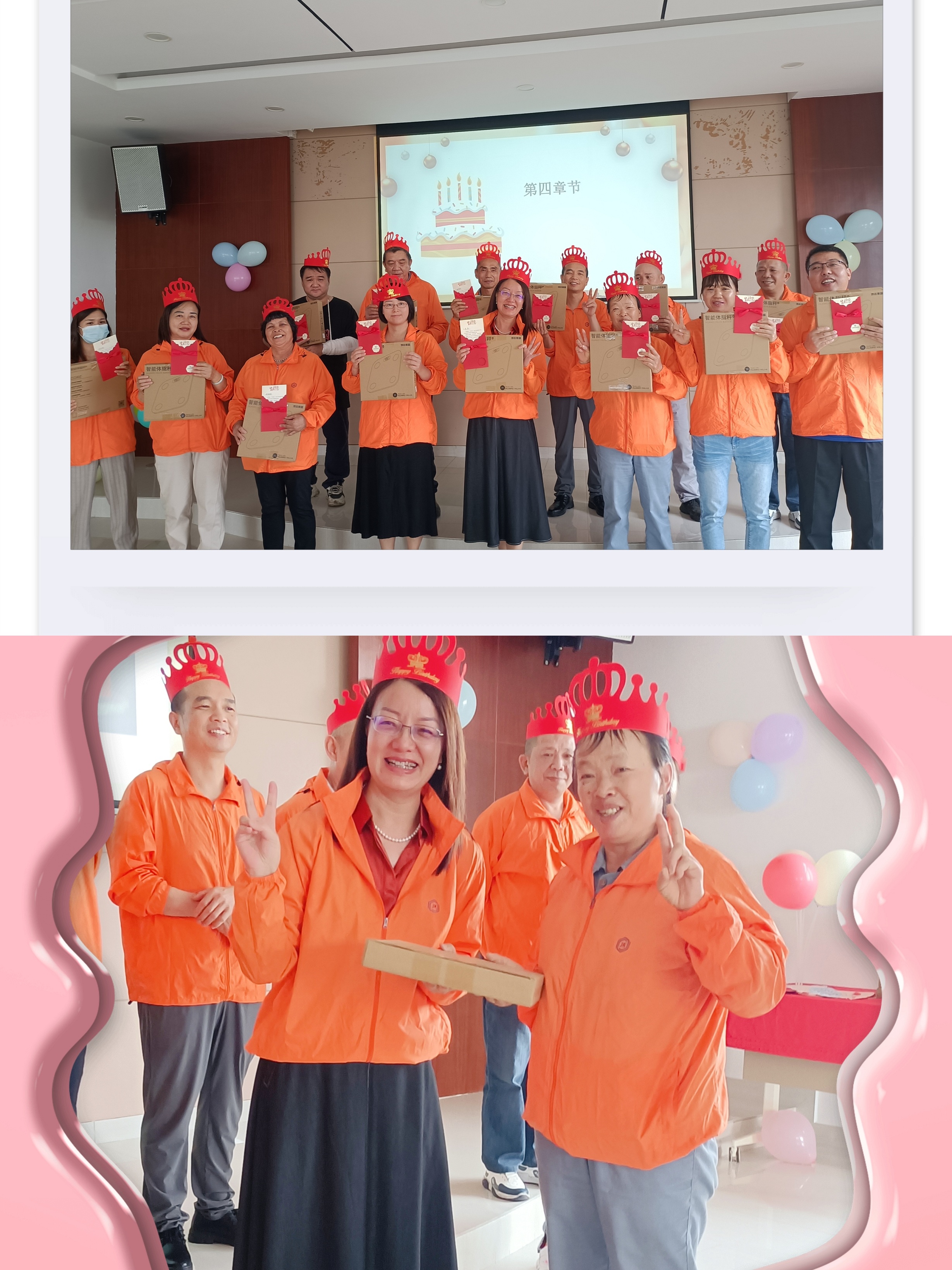 收禮物咯!到了發(fā)放禮物的環(huán)節(jié),平總為壽星們發(fā)放了精美的禮物和生日賀卡。同時(shí),人力行政部已有12年工齡的張春妹張姐,作為代表為平總送上了祝福。